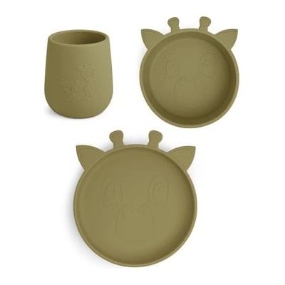 Silikonový jídelní set 3 dílná silikonová sada, která obsahuje talířek, misku a hrnek - vše s motivem roztomilé žirafy. Vše je vyrobeno z LFGB certifikovaného silikonu bez...