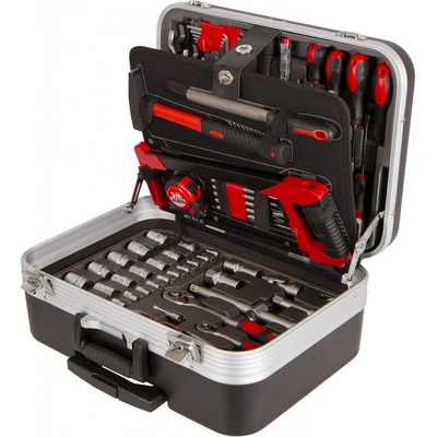 Nedocenitelný pomocník na montáže nebo do dílny, když potřebujete přenášet nářadí z místa na místo – kufr a 105 dílů nářadí! Plastový pevný kufr je vyztužen hliníkovým rámem,...