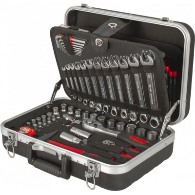 Gola sada s celkem 94 kusů v plastovém kufru Sada nástrčných klíčů 1/4" a 1/2" Kvalitní kovové přezky a panty kufru. Vyrobeno z Chrom-Vanadia Rozměry kufru: 380 x 290 x 80...