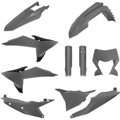 POLISPORT kompletní sada plastů (FULL KIT) KTM EXC/EXC-F/XC-W/XC-WF TBI 26 v sadě kryt světla (8681300004) a kryty tlumičů (8352500003) barva šedá (N-GRAY)