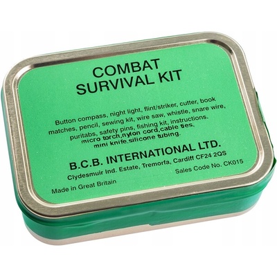 Malá voděodolná plastová krabička se základním vybavením pro přežití. Obsahuje: signalizační zrcátko, zápalky, křesadlo, zavírací špendlíky, svíčku, tužku, vatu, mini kompas,...