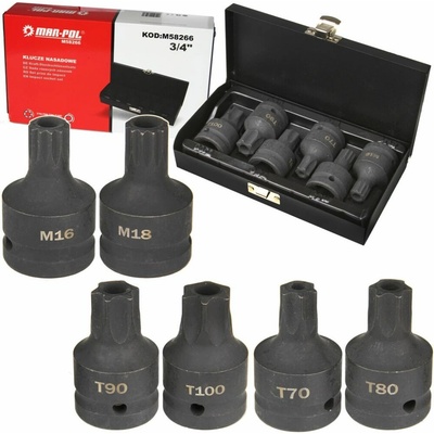 MAR-POL Hlavice rázové zástrčné 3/4" XZN M16, M18, TORX T70-T100, sada 6ks, , , M58266