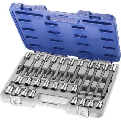 Sada nástrčných klíčů 1/2" pro rázové utahováky.Použití např. na kulové čepy T4, brzdové třmeny VW Touareg (zadní náprava), šroubení setrvačníku MB Atego apod.Sada...