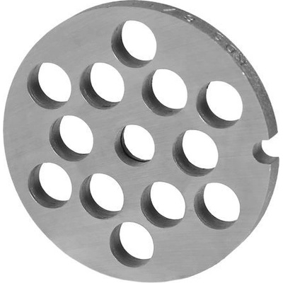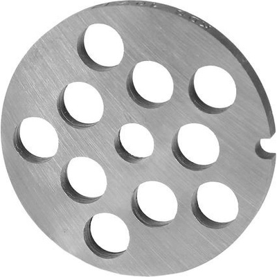 Kovové sítko | masořezka č.8/10 k mlýnkům na maso značky Zelmer. Výrobek není vhodný do myčky. Vhodné pro všechny mlýnky s komorou č.8 Rozměry: Průměr očka - cca 10 mm Průměr sítka - cca 61 mm Tloušťka sítka - cca 6 mm Průměr otvoru pro hřídel šroubu - cca 9...