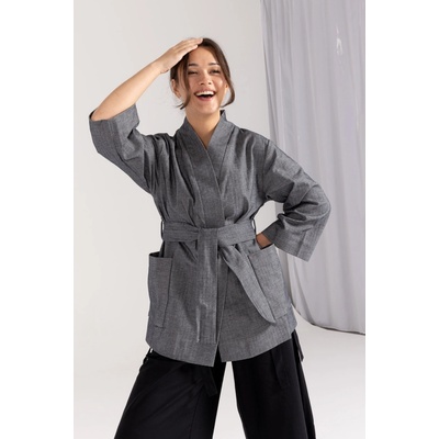 Oneday AKI zavinovací kimono tmavě šedá