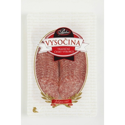 Trvanlivý tvrdý fermentovaný salám, naplátkovaný. Vysočina se vyrábí podle původních rodinných receptur, tedy tradičním fermentováním, což je přirozená konzervace. Následně se nechá zrát několik dní v moderních sušírnách. Vyznačuje se rubínově červenou barvou s malými...