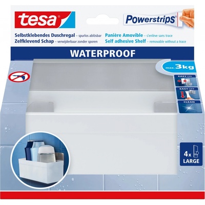Samolepicí polička tesa Powerstrips WATERPROOF je univerzální hluboká polička pro použití v kuchyni a koupelně. Poskytuje bezpečný úložný prostor pro předměty až do celkové váhy...