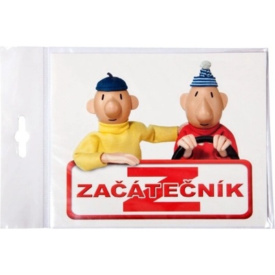 Samolepka na auto s populární dvojicí Pat a Mat. Nálepka má nápis: Začátečník. Rozměr: 15 x 12 cm.