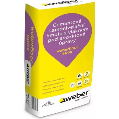 Samonivelační podlahová hmota s vlákny na bázi cementu. Jednosložková samonivelační podlahová hmota Weber nivelit 25 kg s vlákny na bázi cementu a modifikujících přísad pro...