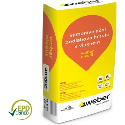 Samonivelační podlahová hmota s vlákny na bázi cementu. Jednosložková samonivelační podlahová hmota Weber nivelit 25 kg s vlákny na bázi cementu a modifikujících přísad pro...