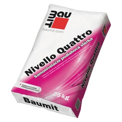 Samonivelační stěrka Baumit Nivello Quattro na bázi speciálních pojiv, přísad a písku.PoužitíPro vyrovnání všech druhů cementových potěrů i litých potěrů na bázi síranu...
