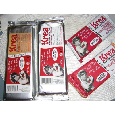 Přírodní hlína bez potřeby výpalu - zatvrdne na vzduchu po 4-5 dnech. Je jemná a nepraská. Hotový výrobek můžete zalakovat pro odolnost proti vodě impregnací pro hlíny a hmoty...