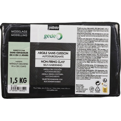 Modelovací hlína Pebeo Gedeo 1.5 kg | různé odstíny Přírodní modelovací hlína Pebeo Gedeo, která tvrdne bez potřeby pečení, přičemž získává velkou odolnost, tvrdost a pevnost. Jílovitý charakter jí dodává velmi dobrou plasticitu pro modelování a dokonalou konzistenci...