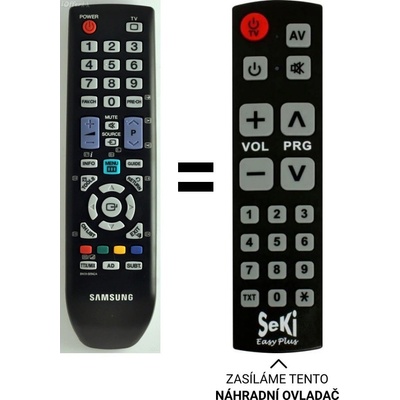 Samsung Replika dálkového ovladače BN5900507A nahrazuje také BN-5900609A. Ovladač má stejný vzhled jako originál. Pro modely TV - LE26R71B, LE26R72B, LE27S71B, LE27S72B,...