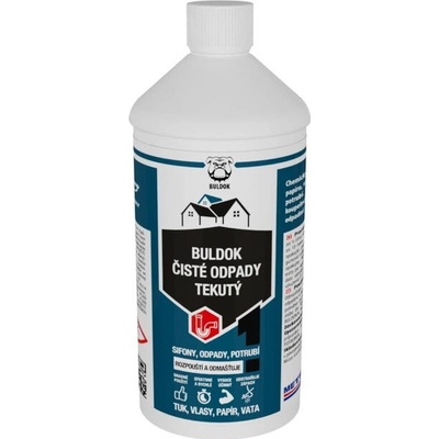 Buldok Čisté odpady tekutý chemicky rozpouští organické zbytky včetně vlasů, papíru, vaty. Odmašťuje a zprůchodňuje odpadní sifony a potrubí. Používá se při zanesení odpadů v...
