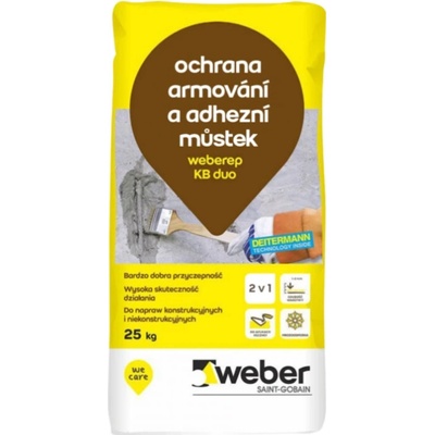 Minerální spojovací můstek pro betonové podklady a ochrana proti korozi armovací ocele Popis produktu: Weberrep KB duo je spojovací můstek na beton, antikorozní ochrana...