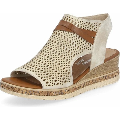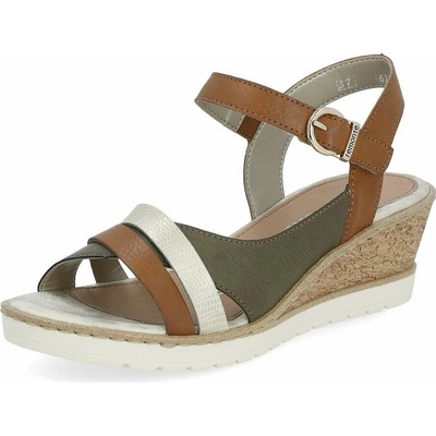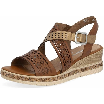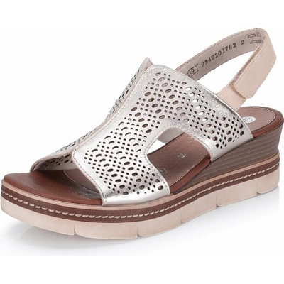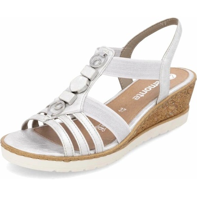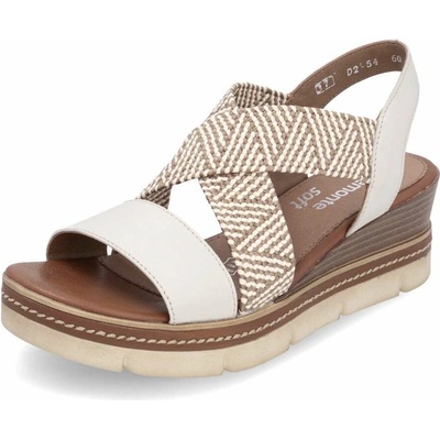 Dámské sandály Remonte na pohodlném klínku zdobené perforovaným páskem přes nárt. Překřížené pásky dávají sandálům šmrnc. Pásek je nastavitelná na sponu. Podešev:Podešev obuvi...