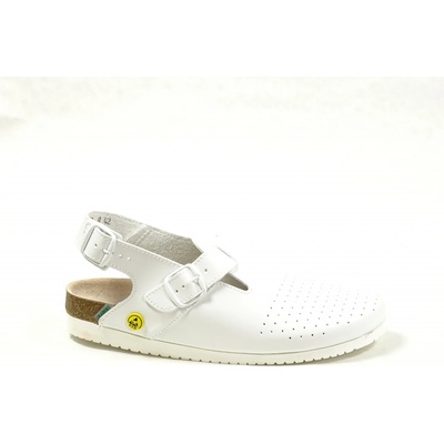 Vrchový materiál kvalitní umělá useň, tvarovaná stélka, nastavitelné zapínání na 2 přezky, zadní pásek také na přezku, záruka 2 roky. Pohodlné pracovní zdravotní sandály SANTÉ...