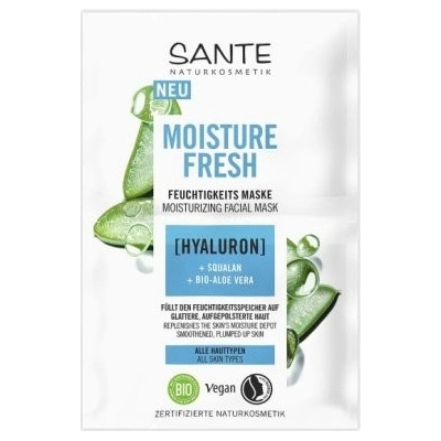Sante Hydratační maska Hyaluron, Squalan, Aloe Vera 2x4ml - Pleťová maska s kyselinou hyaluronovou a aloe vera pro intenzivní hydrataci, prokazatelné snížení vrásek a vypnutí...