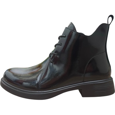 Dámská kotníková obuv s vnitřním chlupem na postranní zip v lesklé černé barvě na nízkém podpatku. Perfektní volba pro chladnější podzimní a zimní dny. Svrchní...