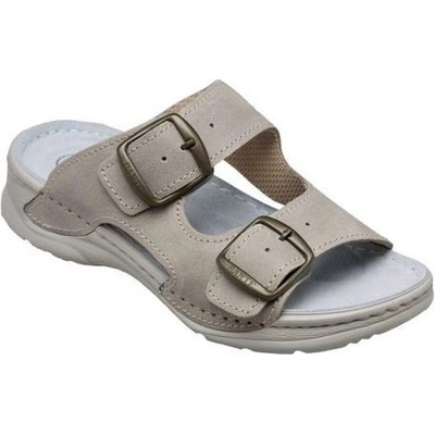 Vrchový materiál kvalitní umělá useň, tvarovaná kožená stélka, nastavitelné zapínání na 2 přezky, záruka 2 roky. Dámské pohodlné zdravotní pantofle Santé s anatomicky...