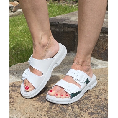 Bílý pánský zdravotní pantofel s chráněnou špičkou. Protiskluzová podešev. Nastavitelný pásek s přezkou-pantofel nebo sandál. Certifikovaná pracovní obuv. Svrchní...
