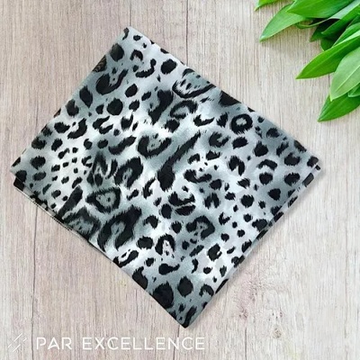 Exkluzivní šátek z hedvábí a polyesteru, v efektním designu většího leopardího vzoru v zajímavé kombinaci šedých odstínů doplněných černou. Velikost šátku 70 x 70 cm Skvělý...