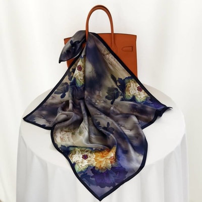 Rozměry hedvábného šátku jsou 110 cm x 110 cm. Šátky jsou vyráběny ručně a tak se rozměr může mírně lišit. Materiál: 100% morušové hedvábí, provedení satin silk s ručně...