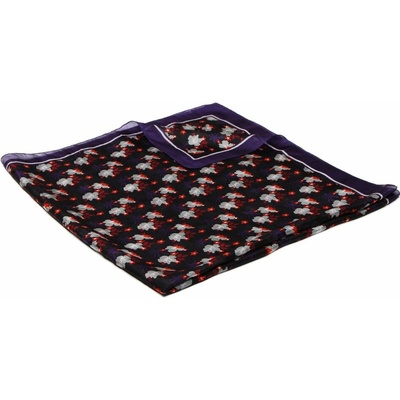 Jemný hedvábný šátek zdobený potiskem s ornamentálním a květinovým vzorem v bílé, šedofialové, tmavě fialové, tmavě petrolejové, šedozelené, tmavě zelené a černé barvě....