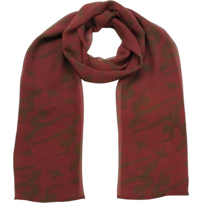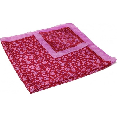 Jemný hedvábný šátek zdobený potiskem s drobným květinovým vzorem doplněným vzorem motýlků ve vínové barvě v kombinaci se světle fialovou barvou. Lehounký a velmi příjemný na...