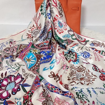 Rozměry hedvábného šátku jsou 86 cm x 86 cm. Šátky jsou vyráběny ručně a tak se rozměr může mírně lišit. Materiál: 100% morušové hedvábí, provedení silk twill (pevnější keprová...