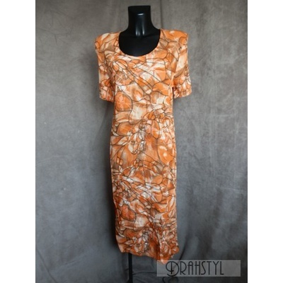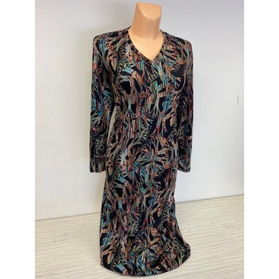 Teplejší šaty se zeštíhlujícím vzorem. rukáv, délka a výstřih je volitelný.Ve vzoru mnoho barev, celkově šaty působí elegantně tlumeným dojmem .