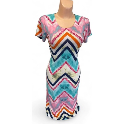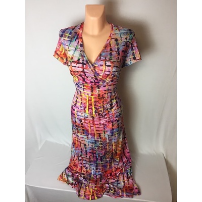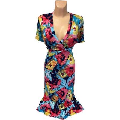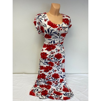 Květované letní šaty s kombinací barev červená, žlutá, světle modrá, viskozový úplet.