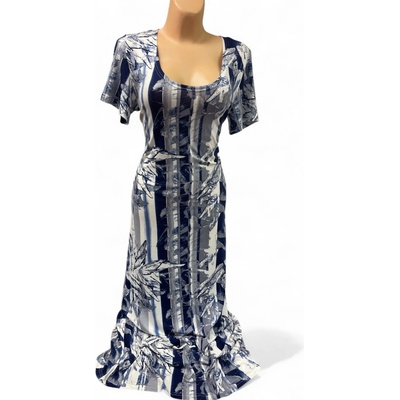 Elegantní dámské šaty v midi až maxi délce s jemným modrobílým potiskem listů a svislými pruhy, které opticky zeštíhlují postavu. Šaty jsou ušité z příjemného, splývavého...