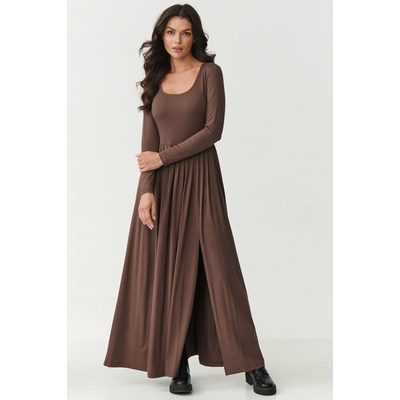 Béžové šaty jsou ušity z viskozového úpletu, hodí se pro každou ženu a každou příležitost.