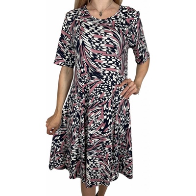 Dámské šaty volného střihu s lodičkovým výstřihem. Viskózový úplet s příměsí elastanu, zaručuje dokonalý komfort při nošení. Velmi nápaditý kousek, který stylově osvěží Váš...
