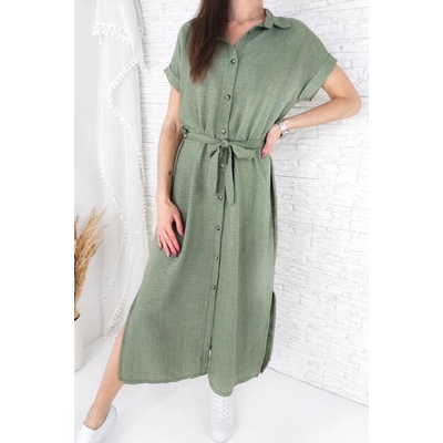 NUMOCO - Skvělé dámské košilové šaty 531-1 velikost: univerzální S - L Volné béžové košilové šaty se zlatými knoflíky a vázačkou v pase zapínání na knoflíky lze nosit i volně...