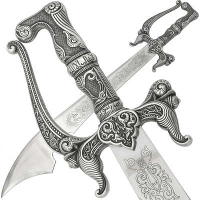 Arabská šavle Galib Originální meč z exkluzivní série "Historical, Fantastic and Legend Swords". Rukojeť odlévaná ze Zamaku se stříbrnou povrchovou úpravou Čepel s průchozí...
