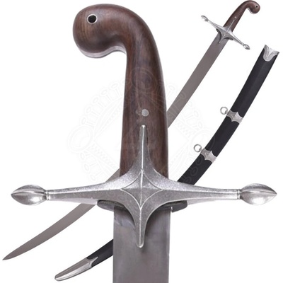 Perská šavle Šamšír Tato replika Šamšíru má čepel z uhlíkové oceli. Zakřivená kulovitá hlavice je vyrobena v jednom kuse s rukojetí. Tvoří jí dvoudílné obložení stopky čepele,...