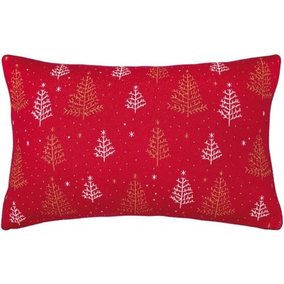 Slavnostní červený pletený povlak na dekorační polštářek s motivem zlatých a bílých stromků pro hřejivou vánoční náladu. Romanticky pojaté stromečky obklopuje sníh a celou...