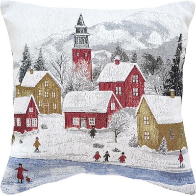Zimní povlak na dekorační polštářek s motivem zasněžené vesničky evokuje kouzlo starých pohlednic. Červené a okrové domky pod bílou peřinou, děti bruslící na zamrzlém rybníku a...