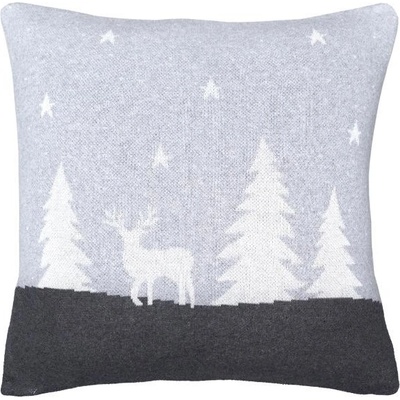 Elegantní zimní povlak na dekorační polštářek se sobem, stromy a hvězdičkami, které dokreslují zasněženou noční krajinu. Povlak je vyveden v šedých odstínech s bílými detaily a...