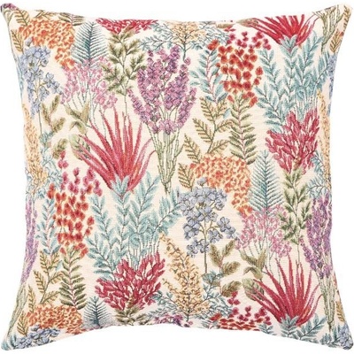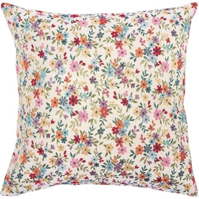 Béžový povlak na dekorační polštářek s tkaným vzorem pestrých květin Vás přenese do letní zahrady, kde si polední vánek pohrává s listy. Lákavé květy jsou vyvedeny v odstínech...