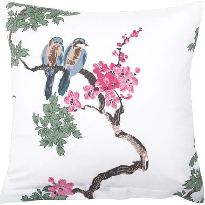 Bílý povlak na polštářek s červenočerným ptáčkem, který sedí na větvičce s červenými plody a vyhlíží sluneční paprsky. Stylový kousek, který dodá Vašemu domovu romantický...