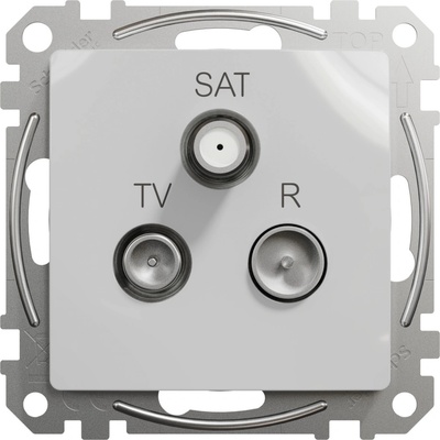 Sedna - typ produktu nebo součásti: zásuvka TV-R-SAT průběžná - úprava zařízení: bez rámu - útlum: 4 dB - barva krycí desky: hliníková - připojení - svorky: šroubové svorky.