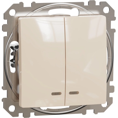 SDD180118 je dvojité tlačítko č. 1/0 + 1/0 v barvě břízy ve stylu Sedna. Montážní hloubka 24 mm. Obsahuje bezšroubové svorky.
