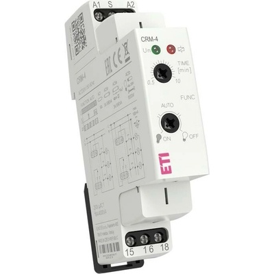 CRM-4 | Schodišťový automat slouží pro zpožděné vypnutí osvětlení na schodišti, chodbě, vstupu, společných prostorách a nebo pro zpožděný doběh ventilátoru (WC, koupelny apod.) ovládá se tlačítkem a nebo několika tlačítky z více míst (paralelně pospojovanými),...