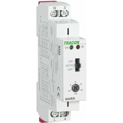 Tracon NARS Schodišťový automat, AC 230V, 0,5s-20min, 16A/AC1, 250VAC/24VDC PARAMETRY Šířka jednotek dělení: 1 Montážní hloubka: 64 mm Počet kontaktů jako pracovních...