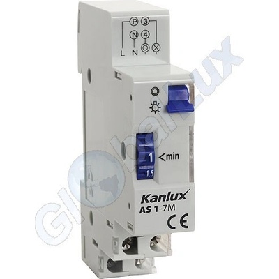 Kanlux AS 1-7M schodišťový automat na lištu 16A 220-240V Kanlux AS1-7M automat je vhodný k použití v panelových domech pro spínátí osvětlení na chodbách a schodištích.Ideální k použití na lištu TH35. IP20 Základní popis Místo použití uvnitř Hmotnost a...