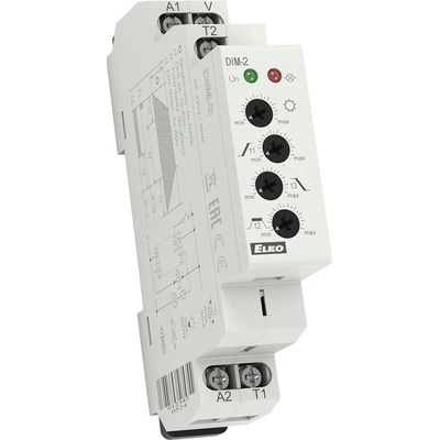 DIM-2 1h | Schodišťový automat se stmíváním určen pro stmívání žárovek, halogenových svítidel s vinutým transformátorem a stmívatelných LED inteligentní řízení žárovkových svítidel, funkce postupného rozsvěcení a stmívání ovládací vstupy pro tlačítko i...